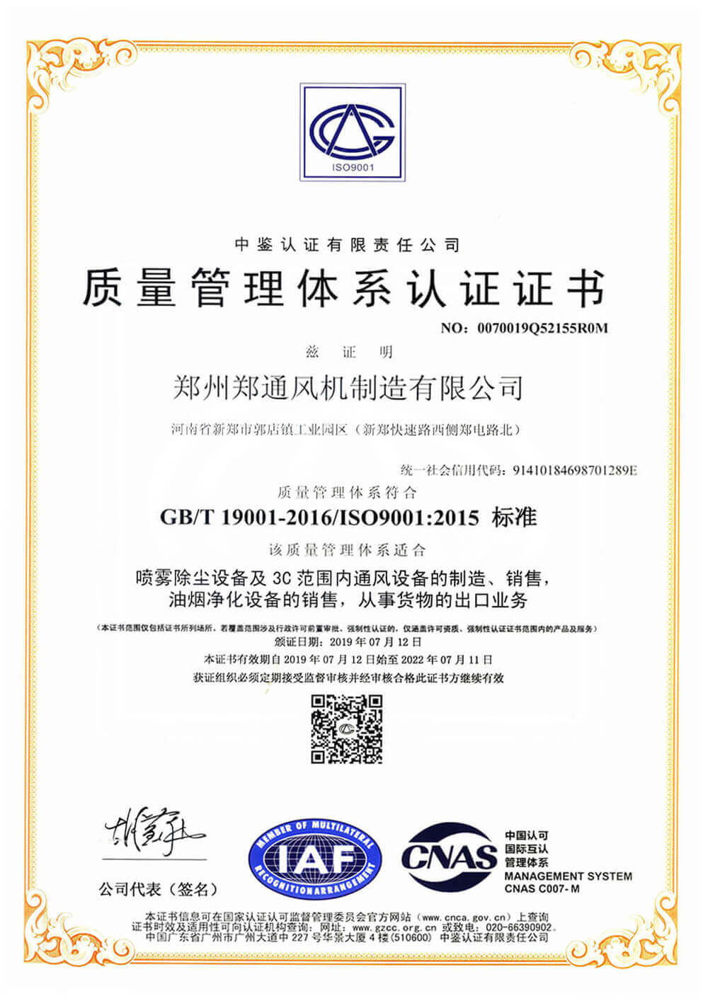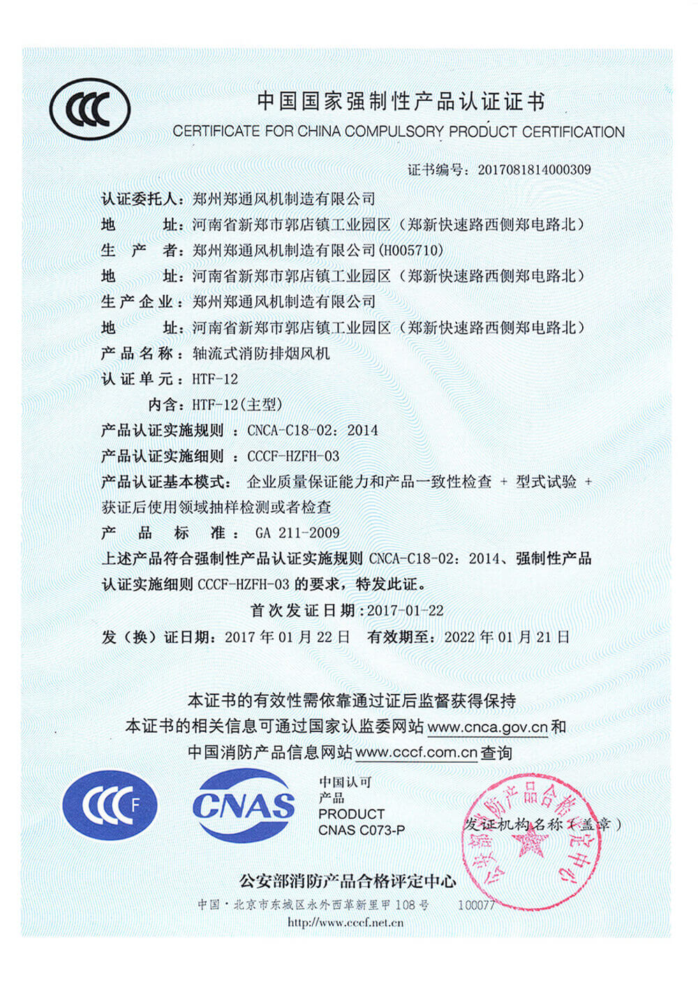 鄭通風(fēng)機(jī)主要產(chǎn)品包括:高壓風(fēng)機(jī)、不銹鋼風(fēng)機(jī)、消防排煙風(fēng)機(jī)、防腐防爆風(fēng)機(jī)、廚房排油煙風(fēng)機(jī)、玻璃鋼風(fēng)機(jī)、鍋爐引風(fēng)機(jī)、軸流風(fēng)機(jī)、柜式離心風(fēng)機(jī)、鍋爐引風(fēng)機(jī),產(chǎn)品通過ISO9001、ISO14001、ISO45001國際標(biāo)準(zhǔn)化組織制定的質(zhì)量管理體系認(rèn)證,部分產(chǎn)品通過了3C認(rèn)證和國家防爆電器產(chǎn)品質(zhì)量監(jiān)督檢驗(yàn)中心認(rèn)證。